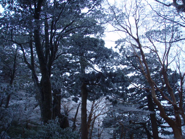 樹冠が氷に覆われていて青色に見えるのがすごくきれいでした。