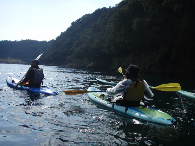 照葉樹にかこまれながら水の上からの景色を楽しみました。