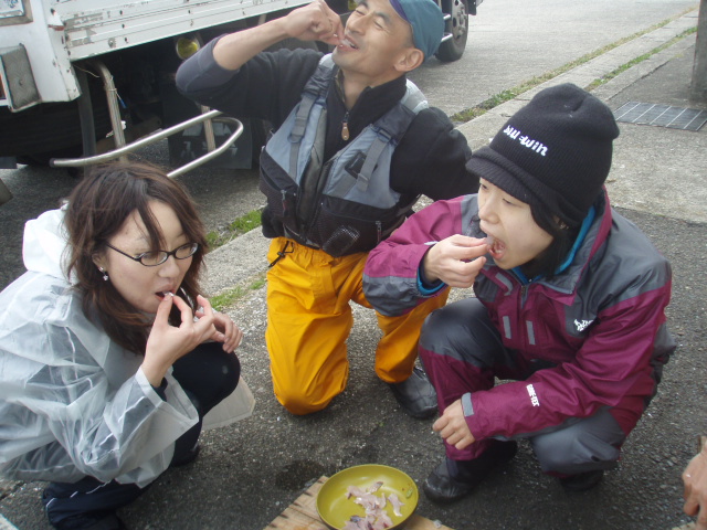 港で食べました。横では漁から帰ってきたほかの漁師さんが